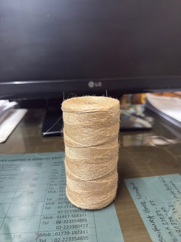 A tightly wound spool of biodegradable jute fiber twine, commonly used for packaging, crafting, gardening, and eco-friendly binding applications.