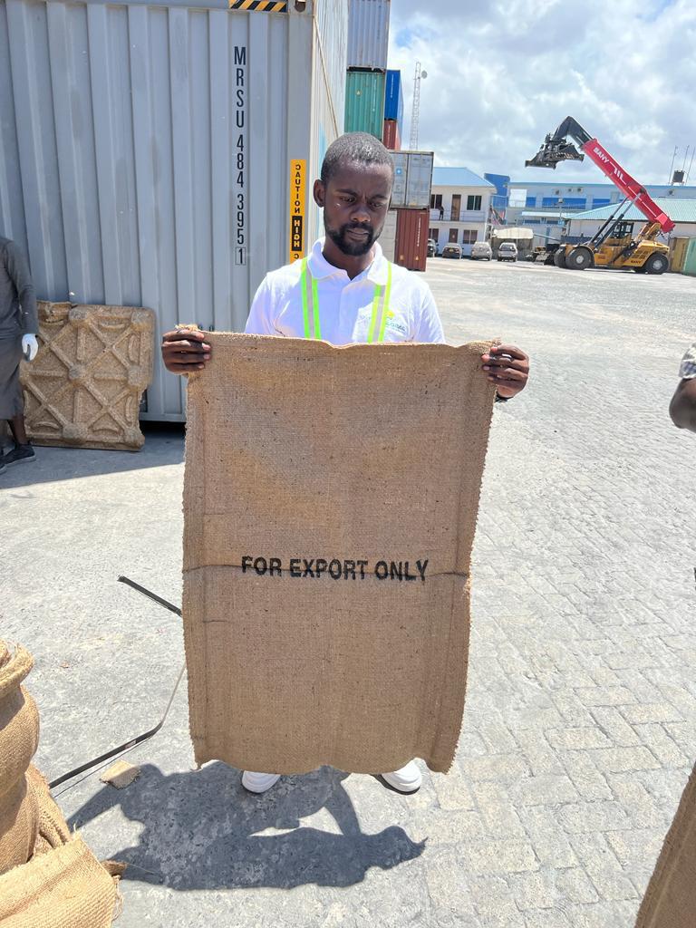 A strong, breathable jute sack designed for storing and transporting coffee or cocoa beans while maintaining freshness and protecting quality.